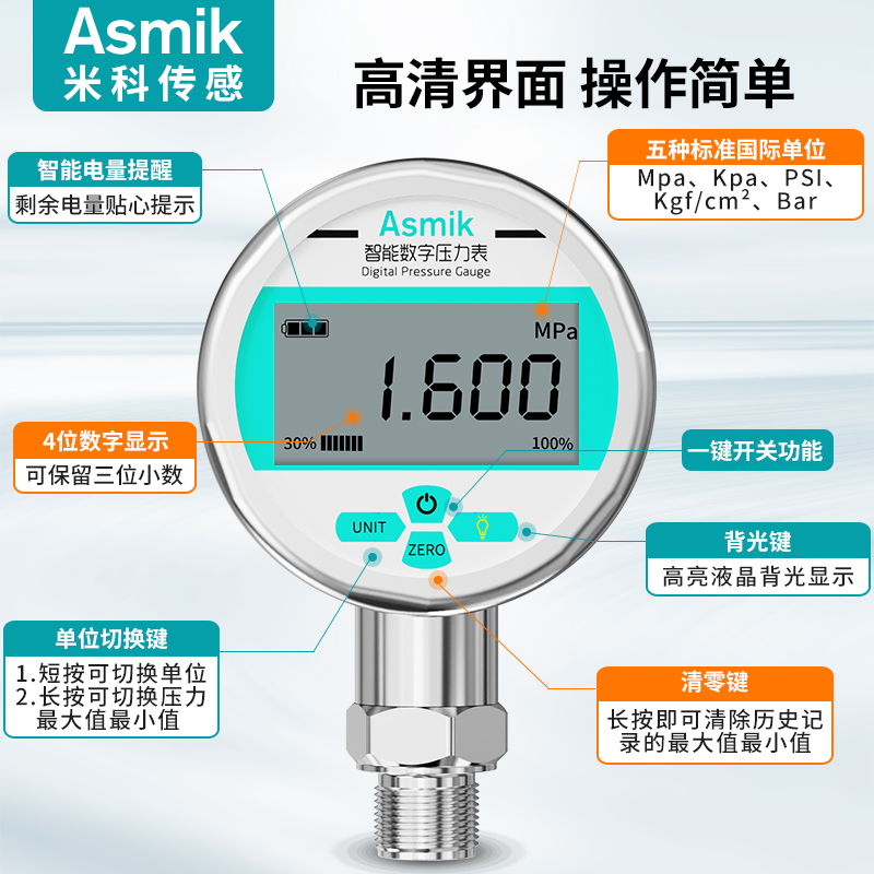 適用場合:米科MIK-Y290/MIK-Y190智能數(shù)顯壓力表可測水壓、液壓、氣壓、油壓等,廣泛應(yīng)用于石油、化工、冶金、輕紡、造紙、環(huán)保、食品等領(lǐng)域的壓力測量。咨詢熱線:400-163-1718