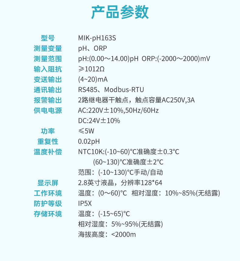 米科MIK-pH163在線pH/ORP檢測(cè)儀