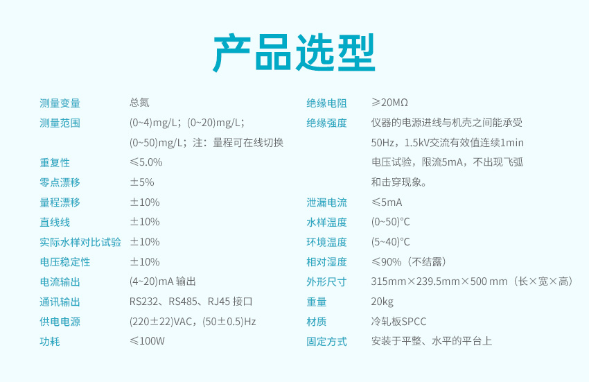 適用場合:TN 型總氮水質在線分析儀(紫外法)采用堿性過硫酸鉀消解-紫外分光光度法檢測,符合《總氮水質自動分析儀技術要求》(HJ/T 102)、《水質 總氮的測定 堿性過硫酸鉀消解紫外分光光度法》(HJ 636)、《污染物在線自動監控(監測)系統數據傳輸標準》(HJ 212)、《地表水自動監測儀器通信協議技術規定》等標準和規范的要求。