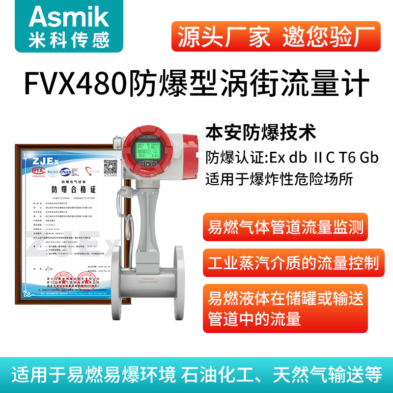 米科-渦街流量計防爆款 空氣、氣體、液體、蒸汽、導熱油